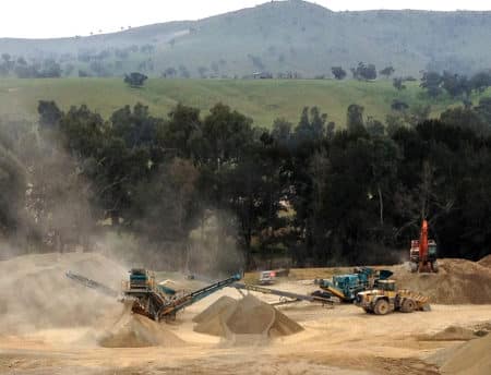 The course sand and river rock have been screened out from a naturally occurring anabranch on the Murrumbidgee river. Years of river flows and flooding has created this very clean and expansive anabranch that contains course sand mixed with highly variable river rock quantities.